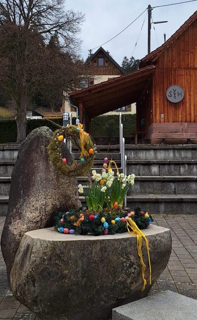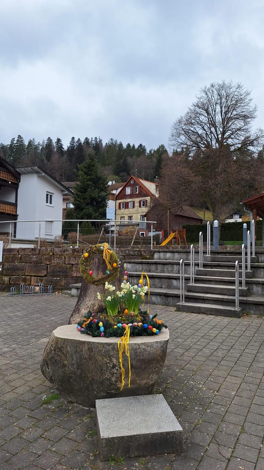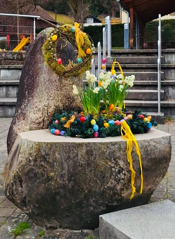 Die fleißigen Hände von besonders kreativen Menschen haben für österliche Stimmung auf dem Dorfplatz gesorgt. Vielen Dank!